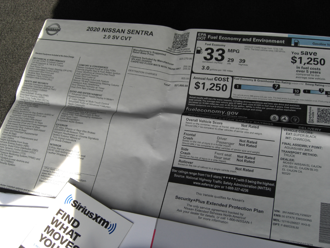 Vehicle Inquiry for 2020 Nissan Sentra SV CVT
